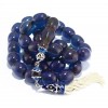 Collectable Transparent, Blue Faturan worry beads set. Made recently by using stored Vintage blue Faturan material from late 30s. This set is having a strong Blue color and the beads changes color and hues depending on the exterior lighting it is subjected to. The cut is symmetrical barrel/ oval with smooth feeling and the head piece is nicely shaped with good volume. The polishing is excellent and no marks or spots are present on the surface of the beads. Handmade, antique finished, sterling silver 925° parts, enameled decortated, with Faturan bead on the custom made  tassel. A special collection item for every Faturan lover but also a durable set for daily use.