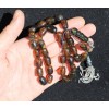 Spectacular natural Dominican amber komboloi, worry beads. Excellent barrel shape cut beads, impressive head piece. Unique natural colors, Green brown beige black. The beauty of Dominican amber in your hands!