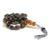 Worry beads set, made of selected, Honey / Black natural amber. Οn the surface of some beads, parts of the rough amber skin are to be seen, giving to the set, a unique natural character. A complete set with 33 natural amber beads in oval shape, head piece and separators. Custom, hand made sterling silver tassel and parts. Handy size dark set, suitable for daily, gently use.