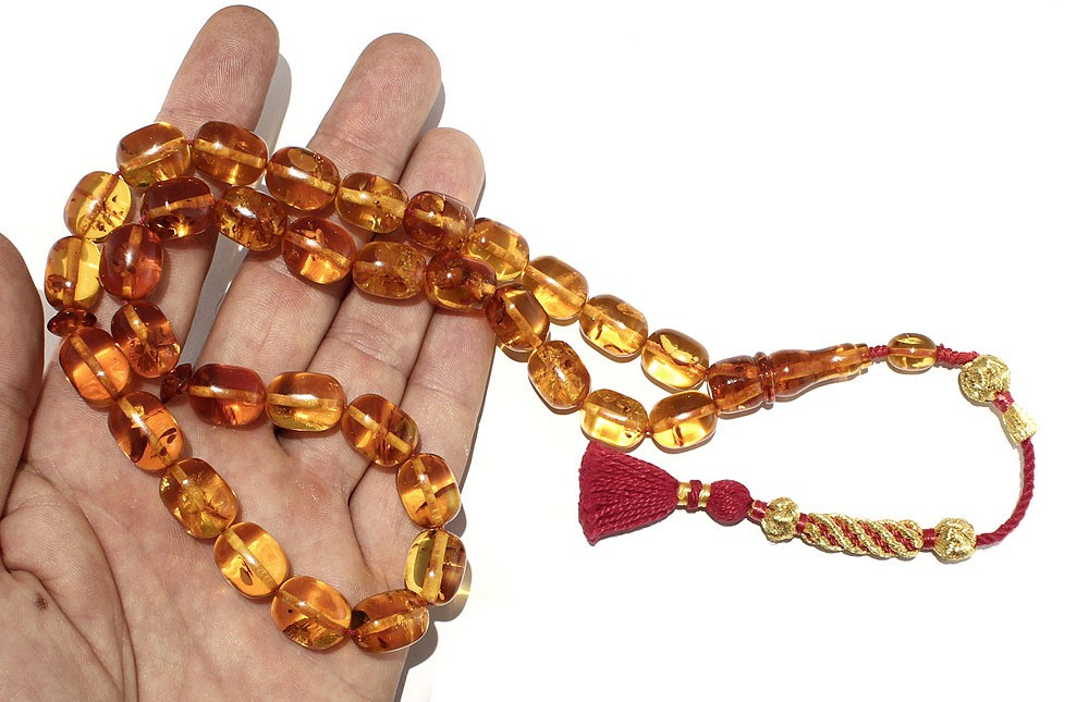 Clear natural solid honey Baltic amber. Beautiful honey color, transparency, and perfect workmanship. A complete set with 33 calibrated barrel shape beads, head piece and separators. Very nice transparency and natural inclusions on every bead. Hand woven traditional, long tassel decorated with amber bead. An all time classic set with a timeless quality.