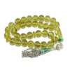Pocket size worry beads set made of natural, green Colombian amber. 33 beads in fine, symmetrical shape, separators and head piece. Olive color transparent material with few but interesting inclusions. From air bubbles to trapped plantation and even a small fossilized insect is present in this unique amber set ! Antique finished sterling silver parts and enamel decorated tassel. A small but complete worry beads set, in a beautiful selection of Colombian amber. A fine addition to any good amber collection and a perfect daily “companion”.