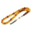 Multicolor, worry beads set, made of selected natural amber. Light and dark Honey transparent beads combinetion. Calibrated,fine symmetrical shape and size. A complete set with 33 natural amber beads in round shape, head piece and separators. Antique finished , sterling silver tassel and parts decorated with smaller amber bead. A medium size, premium amber set with a unique color combination, suitable for daily gently use or as an addition to a private display collection.