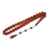Exclusive and Collectable, Worry beads set made of engraved natural amber. 33 hand carved beads, dividing beads and head piece. Traditional Ottoman cut, perfect spherical beads, and premium quality, hand crafted long head piece and beaded finish/tassel. All beads are exactly same dimensions, separator discs very well made and fine finished. The long head piece (imame) is of exceptional craftsmanship, proportionally perfect match with the beads. The beaded string decorative finish, and the unparalleled end piece, make this worry bead set a unique addition to any collection, and an every day companion, for any worry beads user.