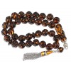 Exclusive and Collectable, Worry beads set made of natural amber. 33 hand carved beads, separators and head piece. Enamel decorated, hand made silver parts and stainless steel ,durable tassel. Originally, light Honey and transparent amber is selected for this item. The Dark finished amber beads surface is by traditional burning technique.The amber beads are initially shaped and curved with spiral pattern details. Then with a very elegant process and in specialized controlled environment are given that permanent dark outlook . Later are fully hand polished , deep enough to get the original light honey color beneath the surface. After that a gently, final polishing is giving more the contrast of the colors and the luster on the beads . The most important, NO chemicals or any artificial colors are involved here! A unique item for use and a special addition to your collection