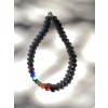 Casual necklace made of of Lava stone beads, and a selection of colorful stones. Amethyst, Turquoise, Malachite, Lapis Lazuli, Citrine, Carnelian, sponge coral and black Onyx. Larger onyx bead is located on the center of this easy wearing design, based on a matching of natural materials and strong contrast of colors. Special, nylon coated steel wire is used trough the beads to ensure durability and silver, hook style, silver clasp for extra safety. A multicolor, hand crafted necklace made of precious natural materials, perfect of any occasion.