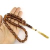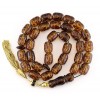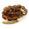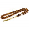 Exclusive and Collectable, Worry beads set made of natural amber. 33 hand carved beads, dividing beads and head piece. Custom, hand made, solid Gold tassel and parts. Originally, very light Yellow and transparent amber is selected for this item. The Dark finished amber beads surface is by traditional burning technique.The amber beads are initially shaped and then with a very elegant process and in specialized controlled environment are given that permanent dark outlook . Later are fully hand carved , deep enough to get the original light honey color beneath the surface. After that a gently polishing is giving more the contrast of the colors and the luster on the beads . The most important, NO chemicals or any artificial colors are involved here! A unique item for use and a special addition to your collection.
