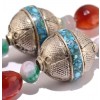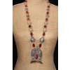 Hand made long necklace made of vintage, silver Nepalese beads,, faceted Agate and Carnelian mineral stone beads. Unique silver beads decorated with a traditional paste made of turquoise. Vintage, hand made silver Center piece, in double fish design decorated with Carnelian stone. An impressive, multicolor necklace full of artistic details .