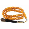 Collectable medium size, Antique look natural amber set. 33 beads, nicely shaped head piece, separators and custom made traditional tassel with sterling silver parts. Very fine selection of amber with natural inclusions. Symmetrical shape of beads with high quality finishing and polishing .A natural amber set with vintage look, for every day use or as an addition to a good collection.