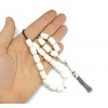Premium quality, Greek Komboloi with barrel shape beads made of natural bone. 21 beads and head bead. White natural color with nice lighter and darker shades. Symmetrical, calibrated cut and antique finished sterling silver 925° parts. Custom, hand made silver tassel hand decorated with enamel. A pocket size, traditional style, komboloi for daily hard use made of a strong natural material.