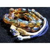 Rare combination of Blue, Green and Honey color variations made of Top quality , semi transparent, Dominican Blue Amber. The only natural amber that reacts with the UV light and creates a blue hue around the material. The limitation of the available Raw material every year it require a very carefully selection. Then the most experienced amber specialists are making the primary design of the set. Finally, only the most skillful worry beads makers can be involved with the cutting,shaping, drilling and polishing, of each amber part. For the perfect result that you can see here being pictured under the Day Light Only, around 90% of the raw material is lost during the process.All that details are making the Blue amber the most Valuable and Exclusive kind of amber. The BL1504 is made of 33 beads in symmetrical shape, head bead and dividers. A medium size set with hand made, traditional style, long, soft tassel. A set full of natural inclusions and minimum natural amber marks on the surface. A collectors item made of the rarest Natural Amber in the world .