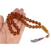 Exclusive and Collectable, Worry beads set made of natural amber. 33 hand carved beads, separators and head piece. Enamel decorated, hand made silver parts and stainless steel, durable tassel, with amber bead decoration. Honey color and transparent amber is selected for this item. The amber beads are initially shaped and curved with spiral pattern details. After that a gently, three stages polishing, is giving more of the color and the beautiful luster on the beads . A unique item with an artistic touch, for daily use and a special addition to any collection.