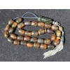 Spectacular natural Dominican amber komboloi, worry beads. Excellent barrel shape cut beads, impressive head piece. Unique natural colors, Green brown beige black. The beauty of Dominican amber in your hands!