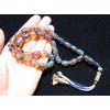 Rare combination of Blue, Green and Honey color variations made of Top quality , semi transparent, Dominican Blue Amber. The only natural amber that reacts with the UV light and creates a blue hue around the material. The limitation of the available Raw material every year it require a very carefully selection. Then the most experienced amber specialists are making the primary design of the set. Finally, only the most skillful worry beads makers can be involved with the cutting,shaping, drilling and polishing, of each amber part. For the perfect result that you can see here being pictured under the Day Light Only, around 90% of the raw material is lost during the process.All that details are making the Blue amber the most Valuable and Exclusive kind of amber. The BL1504 is made of 33 beads in symmetrical shape, head bead and dividers. A medium size set with hand made, traditional style, long, soft tassel. A set full of natural inclusions and minimum natural amber marks on the surface. A collectors item made of the rarest Natural Amber in the world .