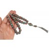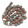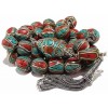 Vintage, medium worry beads set with round shape beads decorated by hand work with Copper, Turquoise and Coral pieces. Old mosaic artwork technique of decoration on silver. 33 heavy beads, matching head piece and separators.Symmetrical shape and antique finished sterling silver 925° parts. Stainless steel durable chain. Custom, hand made ,traditional silver tassel decorated with matching bead. A Collection set with very fine artistic details. Ideal for collection, display and gently use.