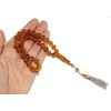 Collectable, Transparent clear light Honey color natural amber set. Unique shaped, hand cut beads and decorative engraving on head piece. 33 beads, head piece, dividing beads and amber bead on custom, Enamel, hand decorated tassel made by sterling silver parts and stainless steel chain. A collectors worry beads set with great artwork details, suitable for daily, gently use.