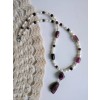 - Multi color, handmade beaded necklace of natural gemstones and pearls.