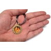 Pendant made of Amber and Silver.Selected clear Honey color amber is carefully hand engraved on the back by using special tools and techniques. The shape and engraved patterns are all inspired from the Greek Antiquity with focus on the clear lines and the fine details. The rounded well polished front, to give a nice luster on the pendant. The amber is finally set on a sterling silver setting which is covered with 18 carats gold layer of 3 micron thickness. A very impressive and unique hand crafted piece of jewellery made of natural materials. Elegant, suitable for any occasion.