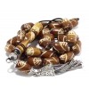Tanned and Engraved Camel Bone worry beads. Nicely hand carved camel bone beads with a leaf pattern on every bead. Complete set with 25 beads and head piece. Antique finished sterling silver 925 parts and bone bead on the hand made tassel. A fully Decorated set made of a strong natural material.