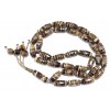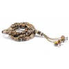 33 beads, complete, traditional style set. Pressed amber beads , made of 100 % natural amber. Amber feeling, weight and unique combination of colors ! Individual very fine faceted cutting, drilling and polishing process for each bead . Hand knotted tassel with Tiger's Eyer, mineral gem stone beads and silver parts. A lightweight, traditional, elegant set.