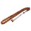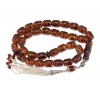 Exclusive and Collectable, Worry beads set made of natural amber. 33 hand carved beads, separators and head piece. Amber decorated, hand made, long silver tassel. Originally, very light Yellow and transparent amber is selected for this item. The Dark finished amber beads surface is by traditional burning technique.The amber beads are initially shaped and then with a very elegant process and in specialized controlled environment are given that permanent dark outlook . Later are fully hand carved , deep enough to get the original light honey color beneath the surface. After that a gently polishing is giving more the contrast of the colors and the luster on the beads . The most important, NO chemicals or any artificial colors are involved here! A unique item for use and a special addition to your collection.
