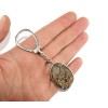 Unique, Hand Made Key holder made of natural Dominican Amber and sterling silver. Special selection of natural amber in free form. The one side is carefully hand polished and the other side intended unpolished, revealing the original rough surface of the amber. Hand made sterling silver 925° setting. Beautiful natural inclusions are present and the Honey, Green And Blue colors of the Dominican amber, in a unique combination. A piece of jewelry made of precious natural materials, hand crafted with traditional jewelry making techniques.